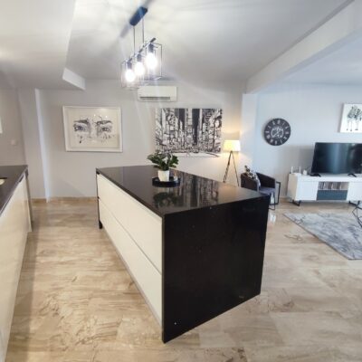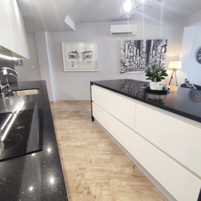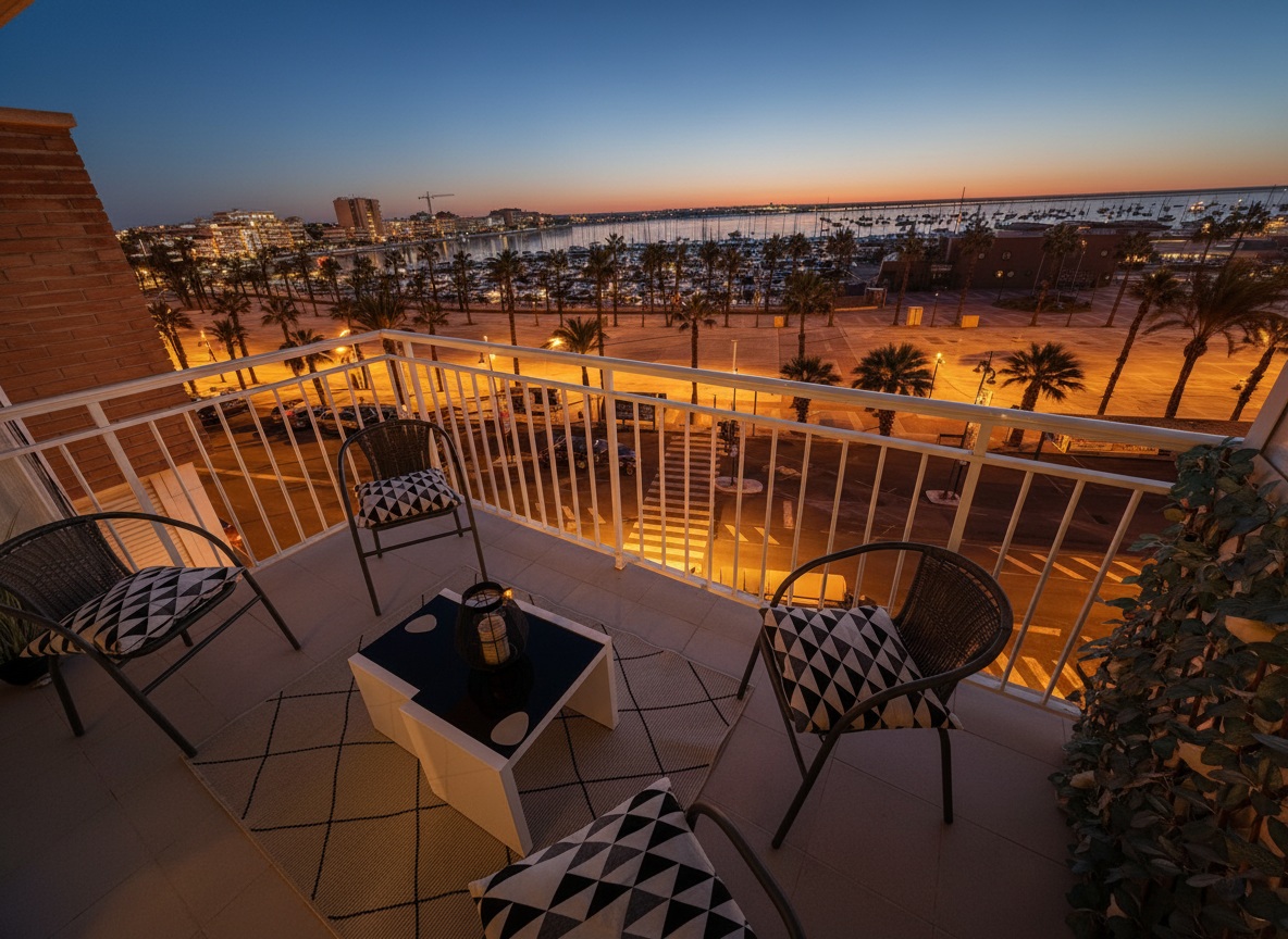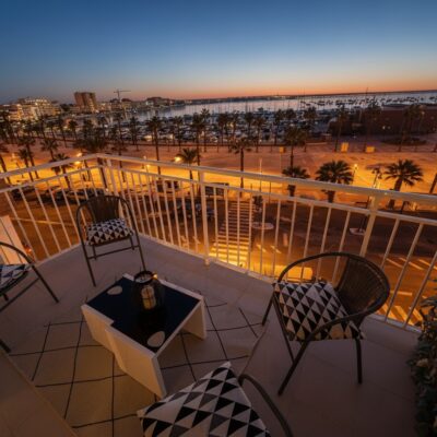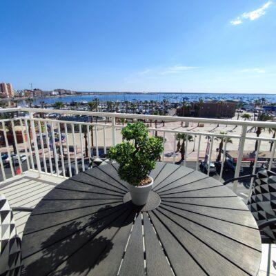 We are thrilled to offer this fully renovated luxury three bedroom two bathroom fourth floor apartment with uninterrupted views of the marina and beaches of Lo Pagan. The property is beautifully presented and is being sold furnished with hot and cold aircon throughout and all white goods included. The apartment is gorgeous and a one minute walk to the beaches of Villananitos and la Puntica. There are some fantastic restaurants on your doorstep, Restaurants Venezuela and El Rubio 360 for example, a great choice of chiringuitos and water sports. The famous mud baths are a ten minutes walk and San Pedro and Santiago de la Ribera a 20 minutes walk. This property is in a prime location. For the golfers you will find the Mar Menor Golf Resort, Roda Golf, Campoamor Golf and Las Colinas all approximately 20 minutes drive away. Alicante airport is an hours drive and Murcia Corvera approximately half and hour away. Should you decide not to hire a car, there is a bus stop just outside the apartment.