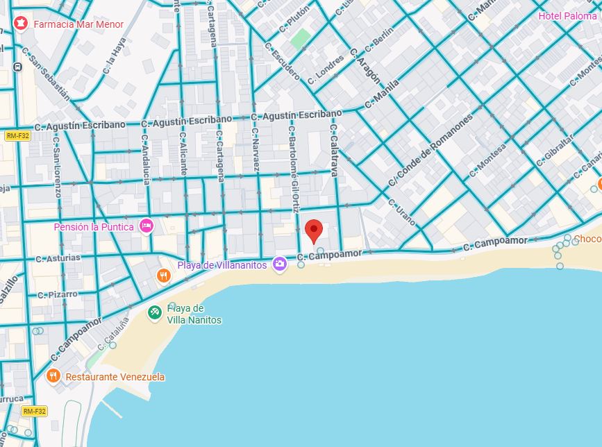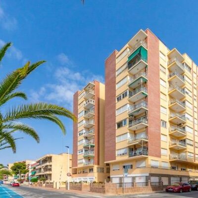 FRONTLINE beach apartment with three bedrooms and one bathroom. Imagene waking up and sitting on your terrace with a cup of coffee looking directly at the beach and the sea. Located in Lo Pagan right on the beach front in a block of apartments with a lift just metres away from the beach and close to bars and restaurants, the marina and La Venezuela Restaurant is just a 5 minute walk away. the mud baths are just a 7 minute walk away too.