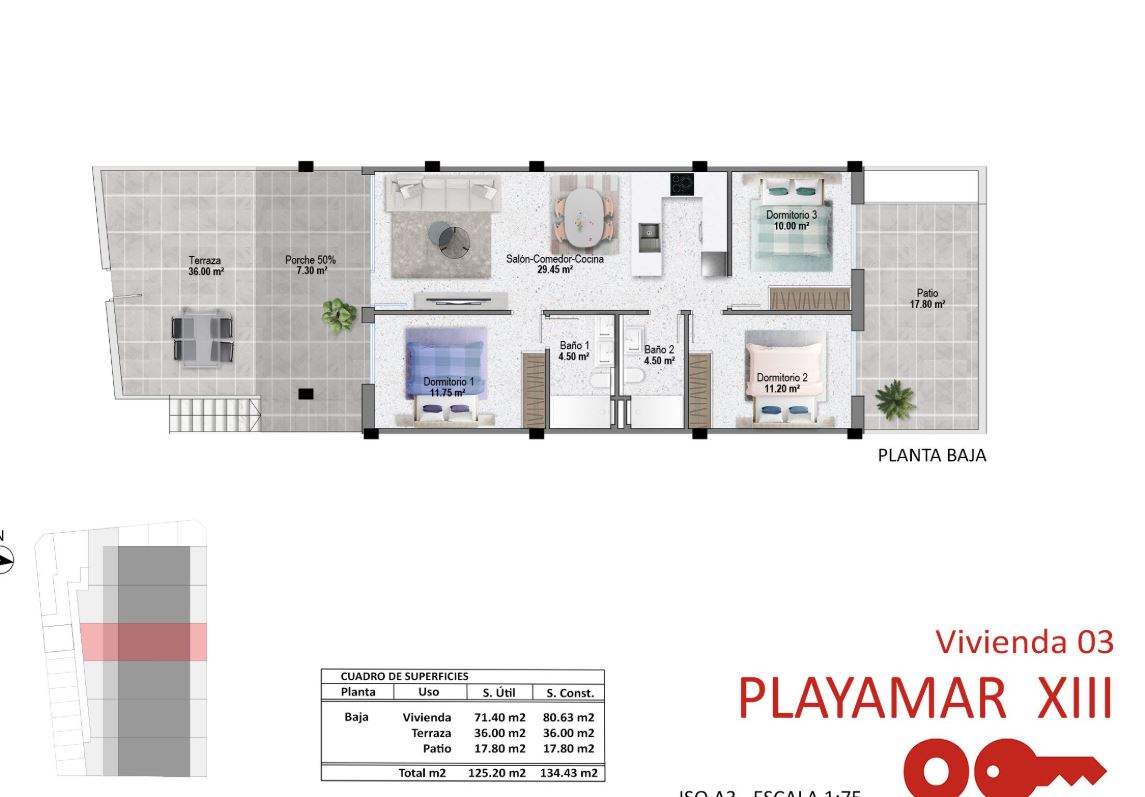 SPECIAL OFFER- 5000 EURO FURNITURE VOUCHER – if you purchase one of these luxury ground floor apartments with us. These are spacious three bedroom 2 bathroom ground floor apartments located in Pilar de la Horadada which has a great high street and lots of cafes, bars, restaurants and all the amenities you could need at your fingertips. The beach is just a 9 minute bike ride away in Torre de la Horadada.