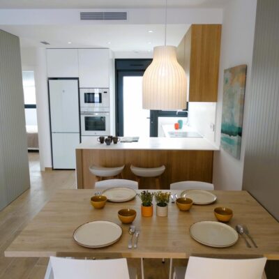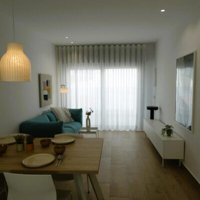 SPECIAL OFFER – 5000 EURO FURNITURE VOUCHER if you purchase one of these ground floor apartments from us. These three bedroom two bathroom ground floor apartments are located in an enviable spot with a park in front of the complex which is in the bustling town of Pilar de la Horadada. In this town you will find an array of cafes, bars, restaurants and all the amenities you need and the beach is just a 15 minute bike ride away. There are also three bedroom top floor options with solariums and two bedroom options too.