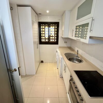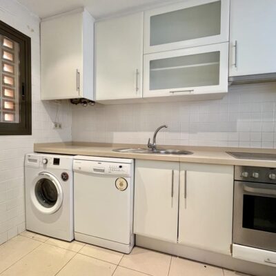 There is an open plan kitchen diner lounge with patio doors to the terrace that has a south westerly orientation and views of the pool, there are proper stairs that lead to the roof solarium which is enormous and is where outside living can be enjoyed to the full. Two double bedrooms with fitted wardrobes. The master bedroom has an ensuite and there is a further family bathroom and an added bonus is both bathrooms have windows. The property is unfurnished so you can put your own stamp on it but is does come with white goods, vented ac, gas central heating, a store room in underground parking and your own parking space.