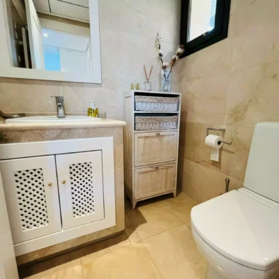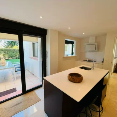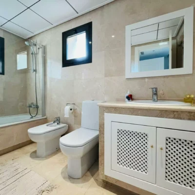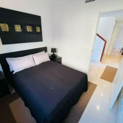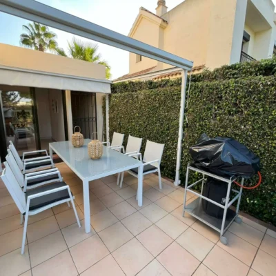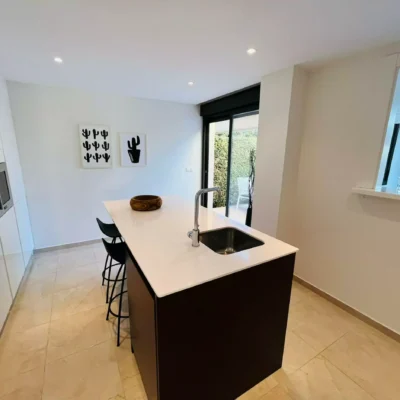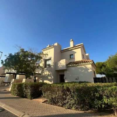 The ground floor features a bright and spacious lounge diner, with large glass sliding doors opening directly to the private garden and swimming pool—ideal for relaxing or entertaining. The recently renovated white gloss kitchen includes glass doors leading to a sun terrace, perfect for al fresco dining. There is a downstairs double bedroom with fitted wardrobes and separate guest toilet. Upstairs, the master bedroom boasts an en-suite bathroom, while a second double bedroom enjoys access to a private terrace with stunning golf course views and separate guest shower room. The property has hot and cold integral aircon and marble flooring throughout. Roda Golf Resort is a prestigious gated community just minutes from the beaches of the Mar Menor. It features a superb 18-hole Dave Thomas–designed golf course, clubhouse, gym, and on-site restaurant, all surrounded by beautifully landscaped gardens and 24-hour security. Ideally located near Los Alcázares, Murcia Airport, and local amenities. Please contact us to arrange a viewing.