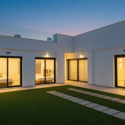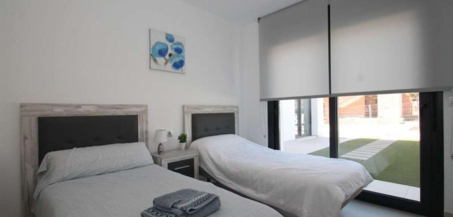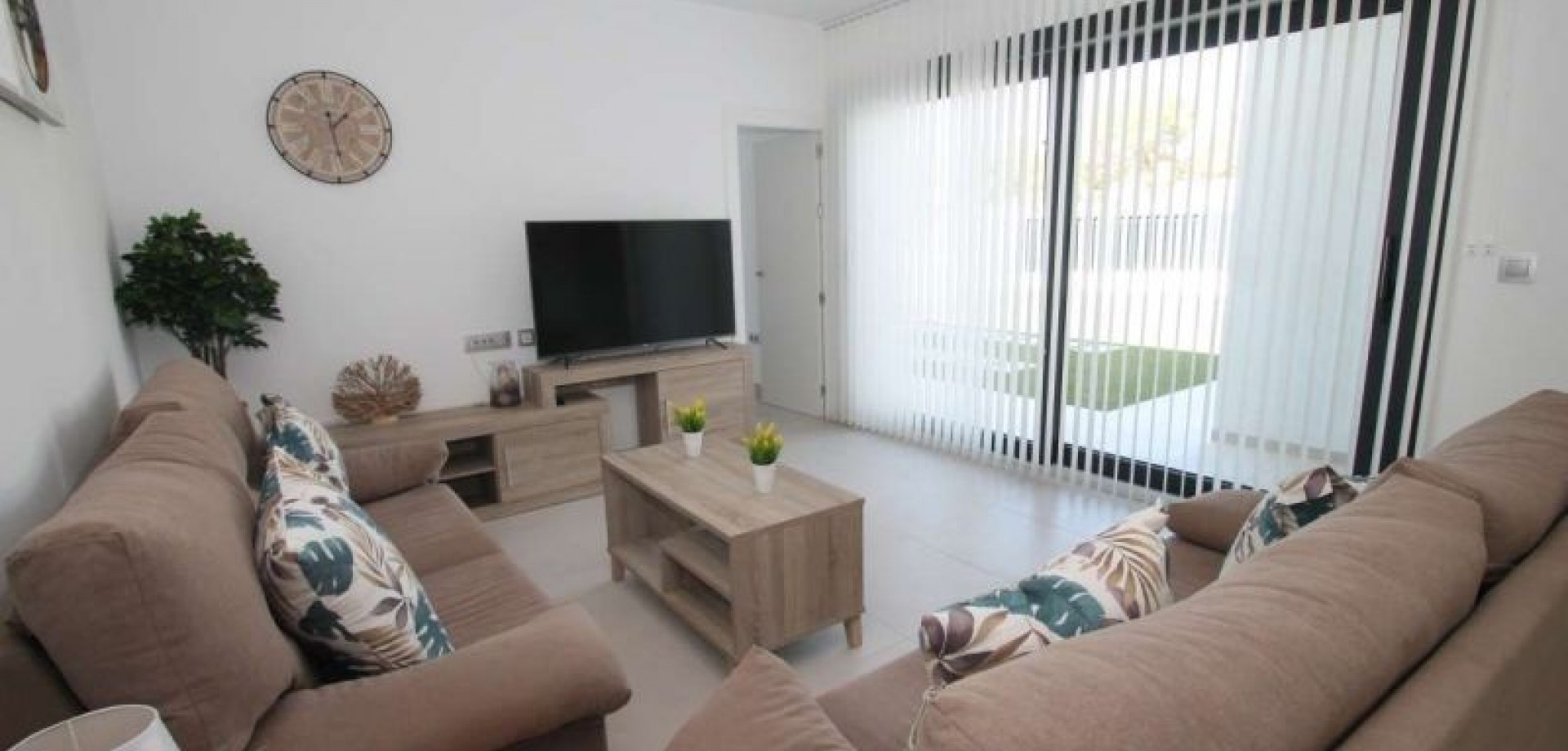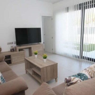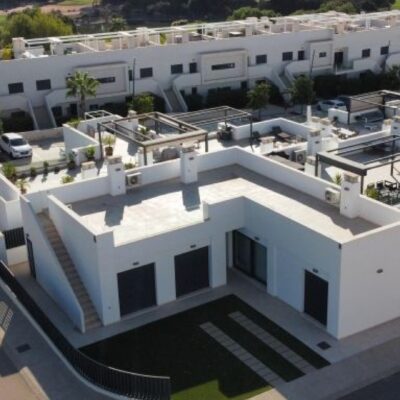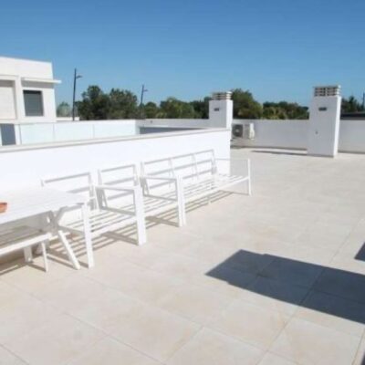 The villa has an open plan living room, three bedrooms, three bathrooms, a garden and roof terrace. The villa is ready to move into now. Offered for sale furnished and with air-conditioning. There is a communal swimming pool across the road, plus space to install a private swimming pool should you wish to.
