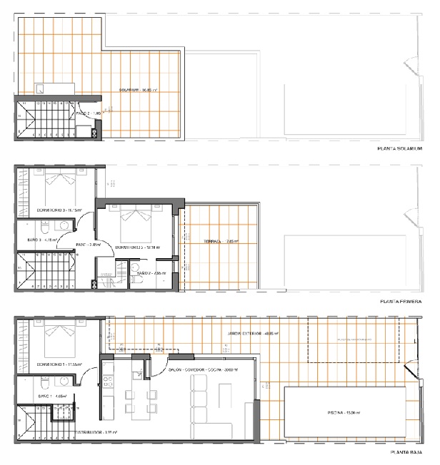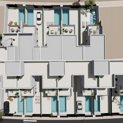 A small development of 12 villas with a choice of either east or west orientations. Villas 1 to 8 come with a roof solarium with a summer kitchen and start at 379.000 euros. These villas have a 14m2 private pool, intercom system and driveway parking for your car. The Ac and electric car charger is preinstalled.