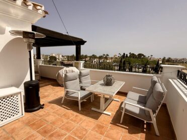 South facing sea view penthouse just 70m from the beach in San Pedro de Pinatar with two bedrooms and one bathroom this apartment is in a prime location with a supermarket just across the road and only 4 minute walk to the fantastic restaurant La Venezuela and close to lots of great cafes and restaurants. The famous Lo Pagan mud baths are a short walk away and San Pedro a short drive away.