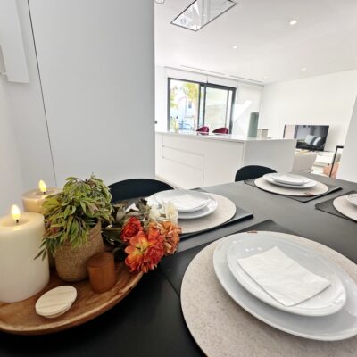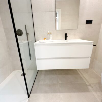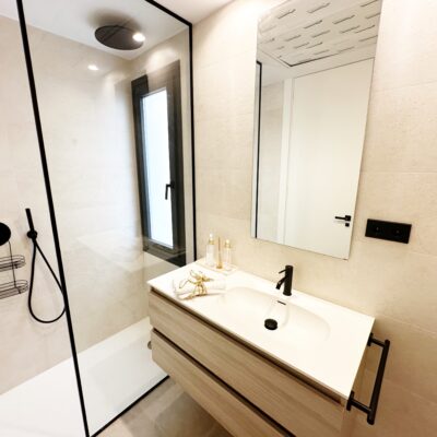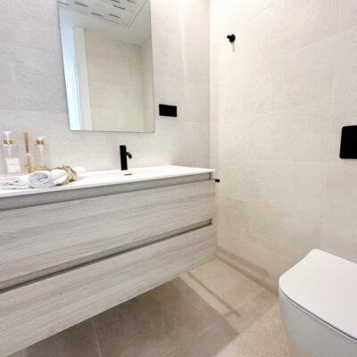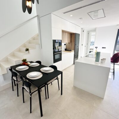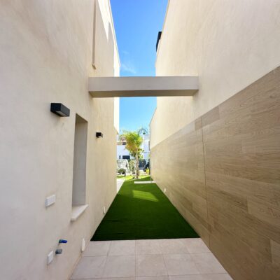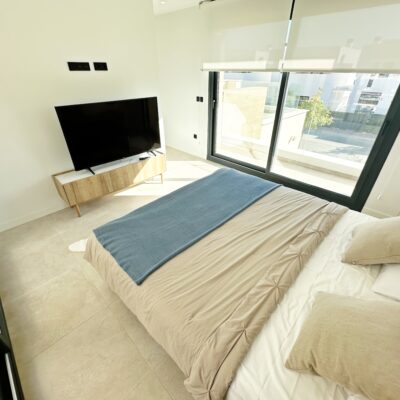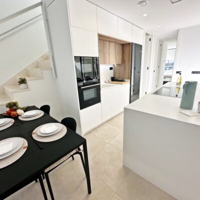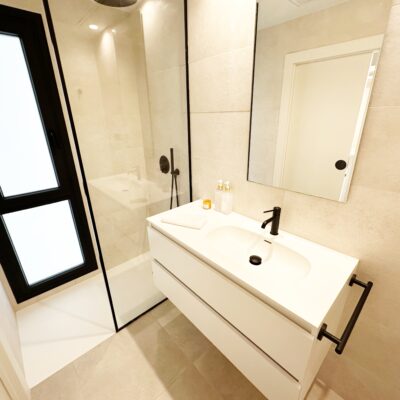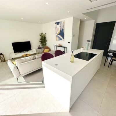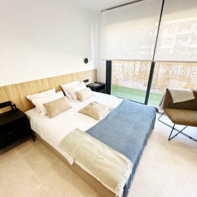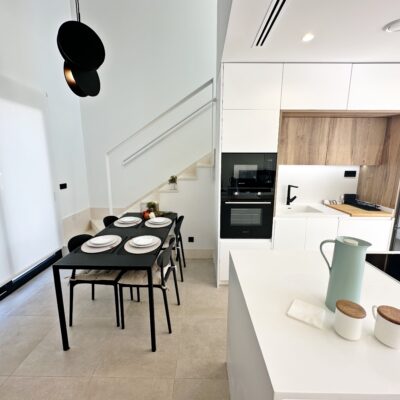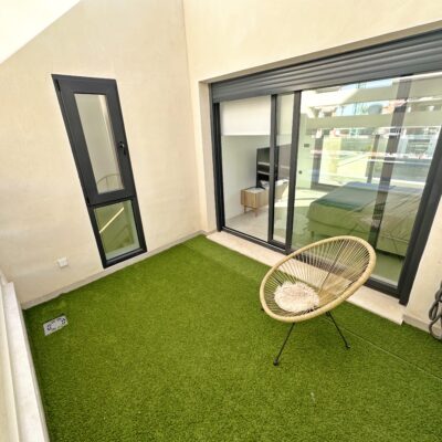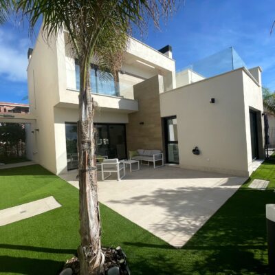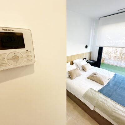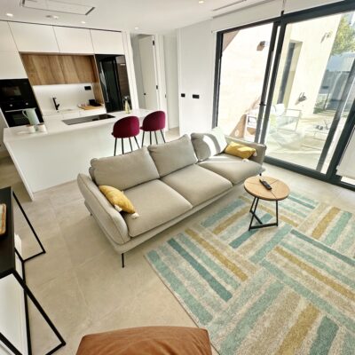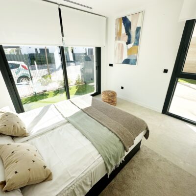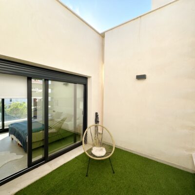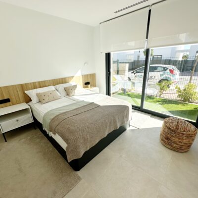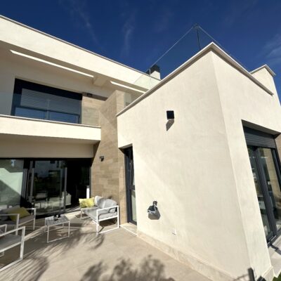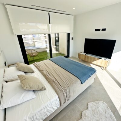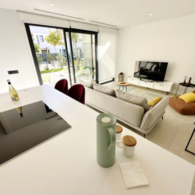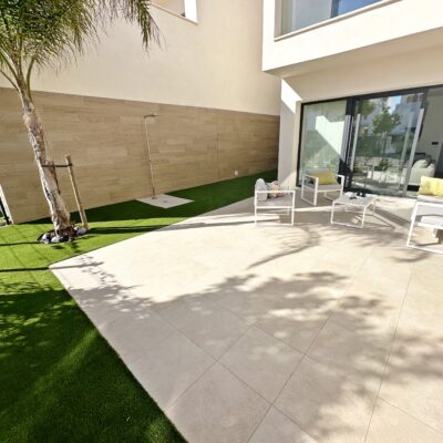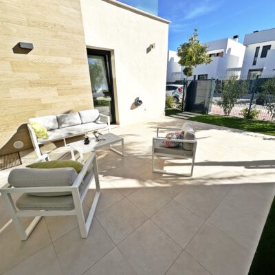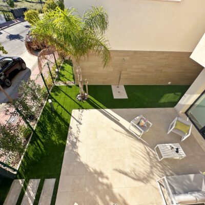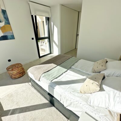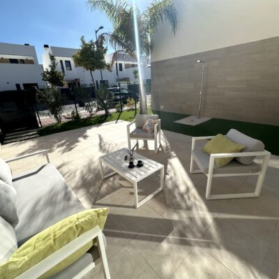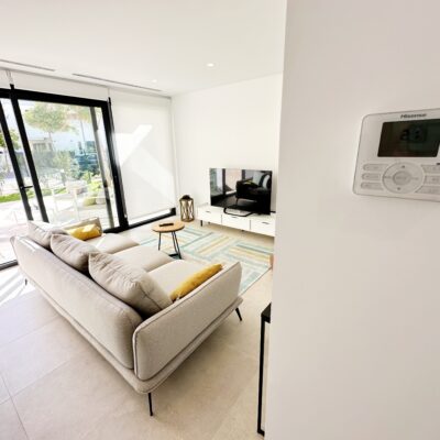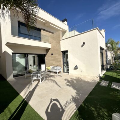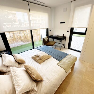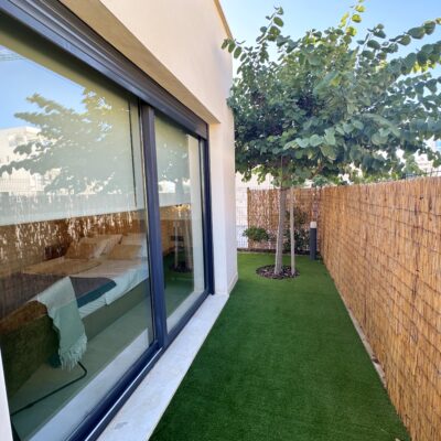 The property is sold fully furnished, has an A-class energy rating, Airzone climate control, an outdoor shower in the garden, and the option for quick completion – with no need to wait for a new construction phase.