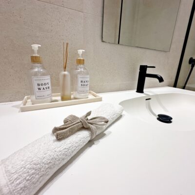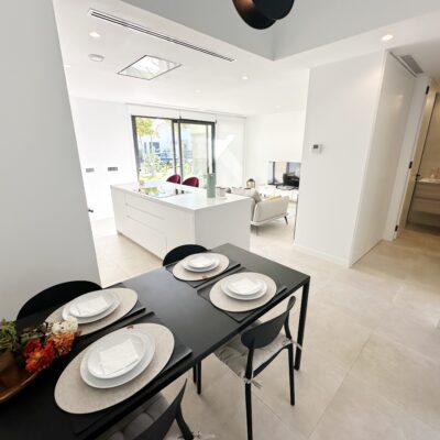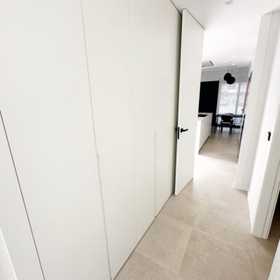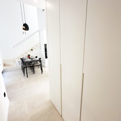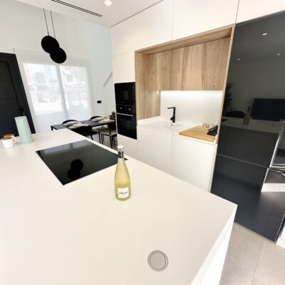 The kitchen features an elegant island finished with premium Porcelanosa – Krion worktop, made of a modern, durable and hygienic material inspired by natural stone. This worktop was added as an additional feature at the owners’ request.