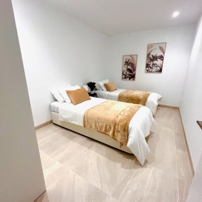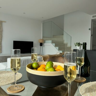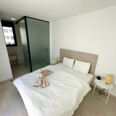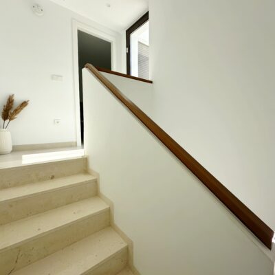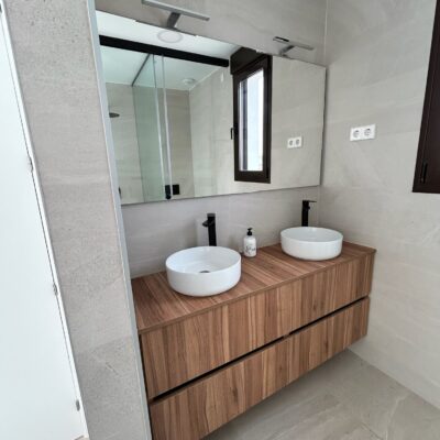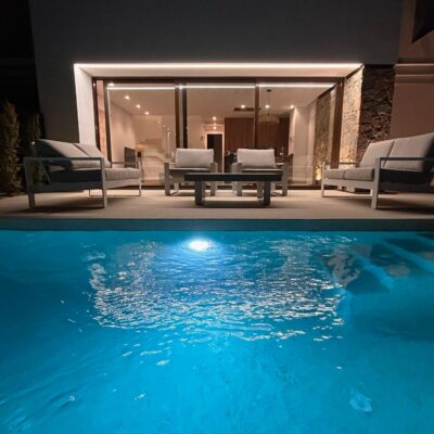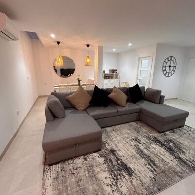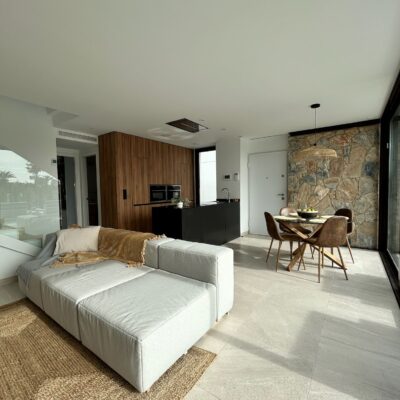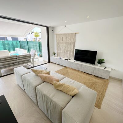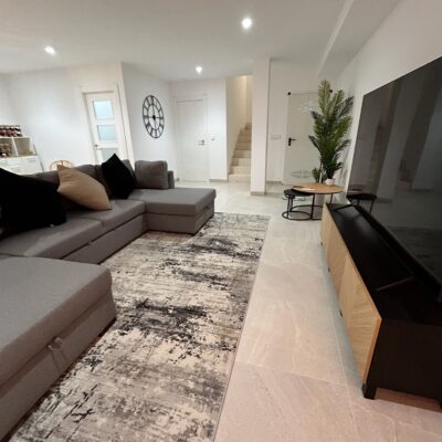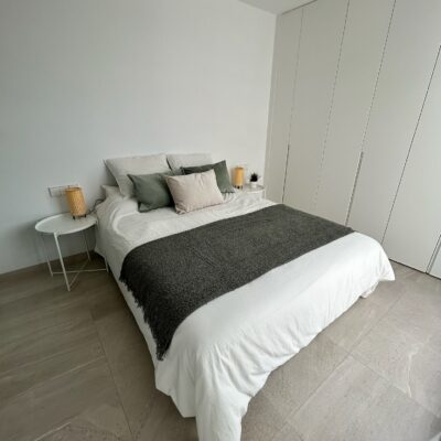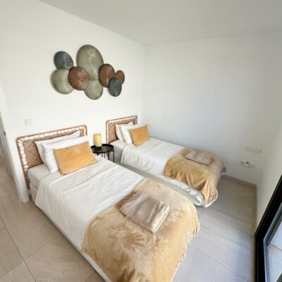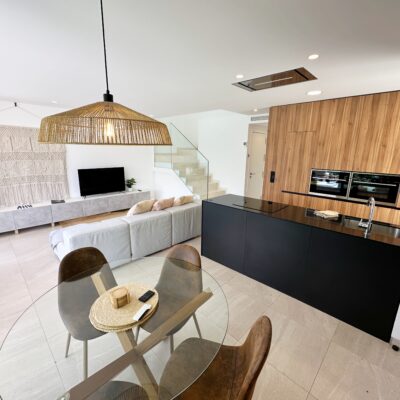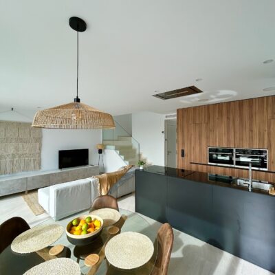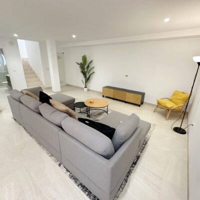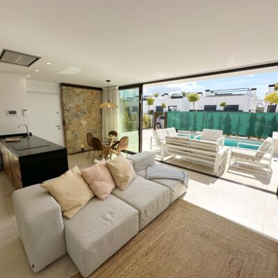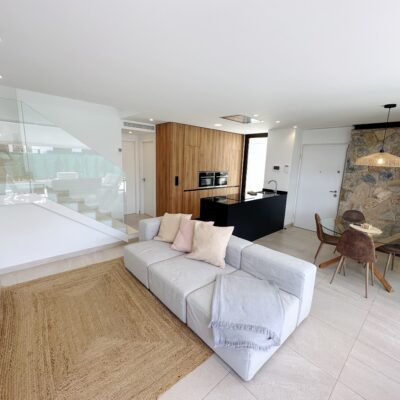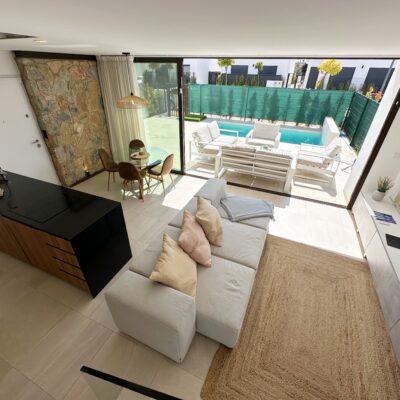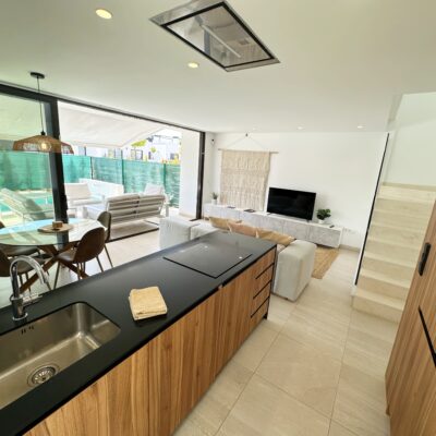The villa is beautifully presented and furnished to the highest standard, all of which is included in the sale. The ground floor comprises an open plan living room and contemporary kitchen and built-in appliances. Sliding doors open into the garden which features sun bathing areas, an outdoor shower and a private swimming pool. Also on the ground floor is a double bedroom with fitted wardrobes and a bathroom.