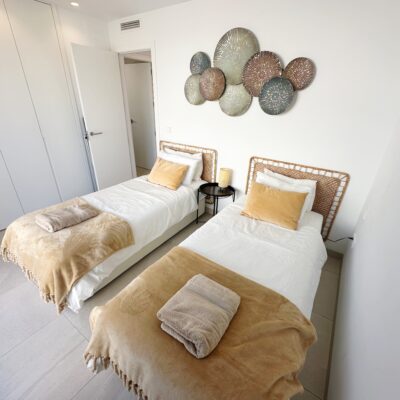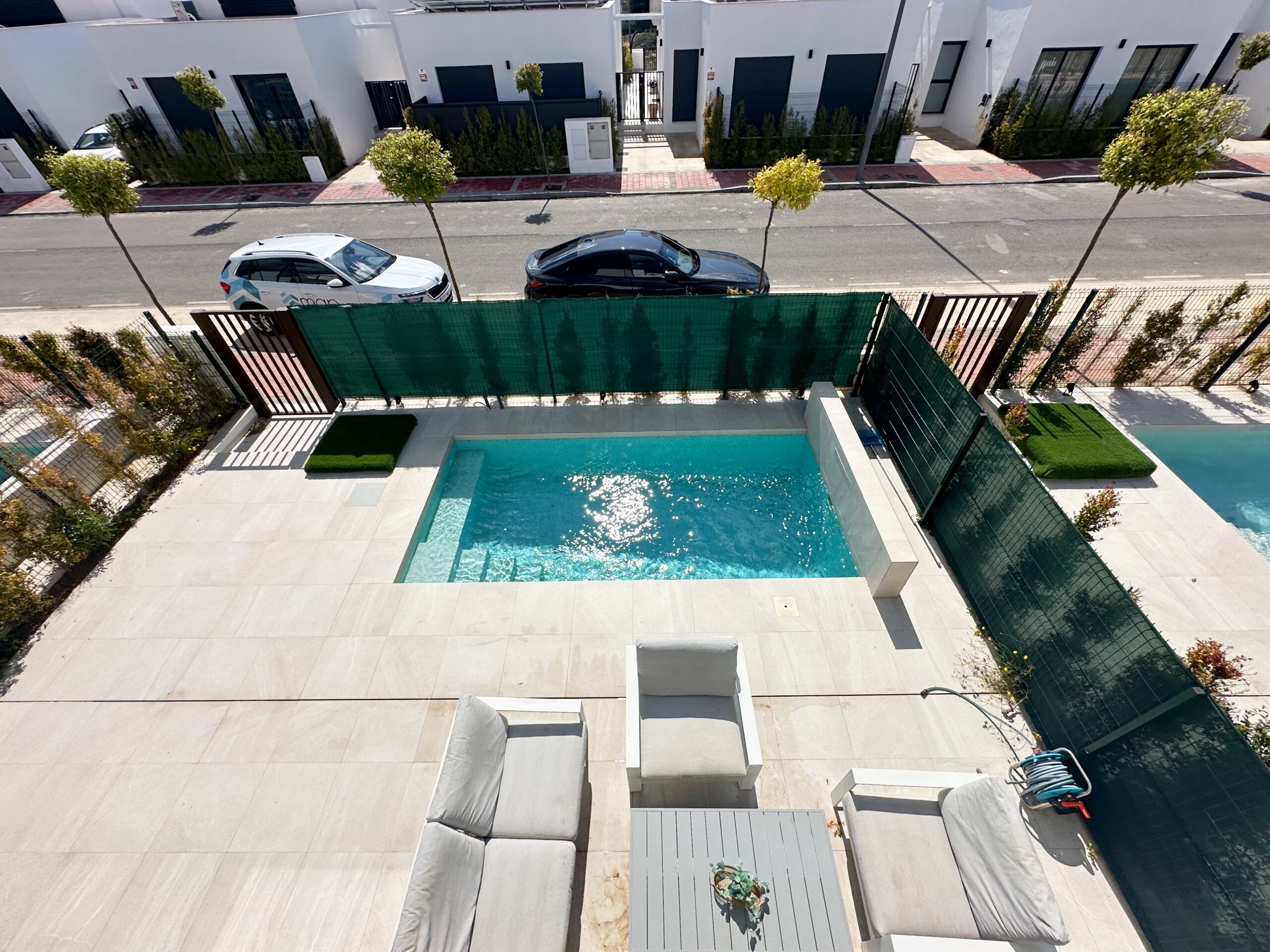On the first floor there is a master bedroom with fitted wardrobes and an en-suite bathroom along with a sun terrace. The spacious 56m basement houses another double bedroom, bathroom and is also currently being used a TV/cinema room. This is a superb villa located on a gated secure resort. The resort features the largest Crystal Lagoon man made lake in Europe. The lagoon has sandy beaches, a beach bar and lovely restaurant. Elsewhere on the resort there is disc golf, yoga and picnic areas, walking and jogging tracks and sports facilities.