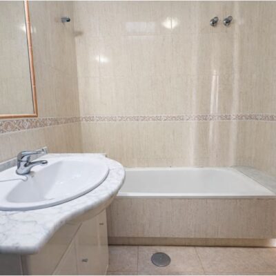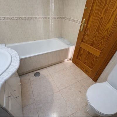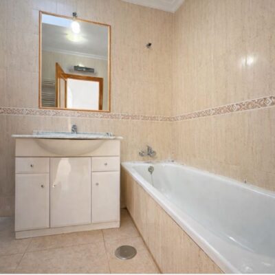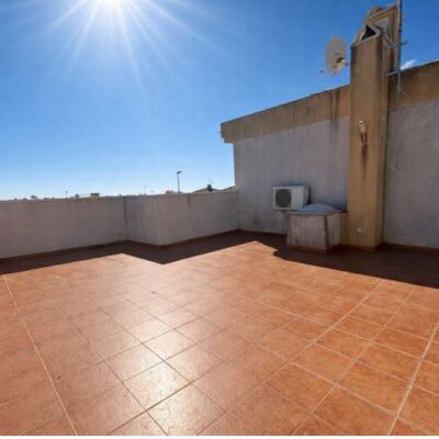 The front terrace is south facing so bathed in sunshine all year and adds light to the lounge which has an open plan kitchen that has a door leading to a rear patio with pretty tiles. From this patio there are stairs leading to an enormous roof solarium. There are two double bedrooms with fitted wardrobes and a family bathroom. This property comes with a large underground garage with a separate room with natural light. This is a great area and added bonus. Contact us to arrange to view this property.