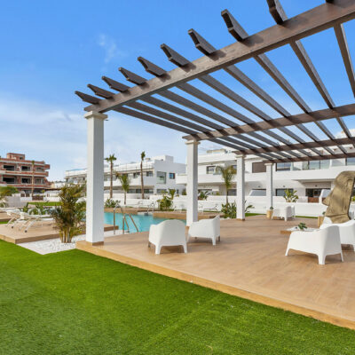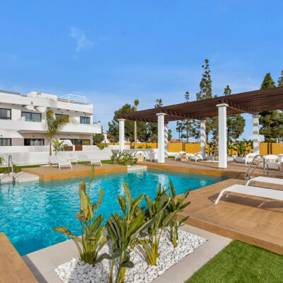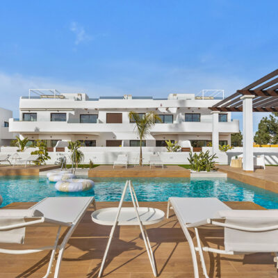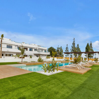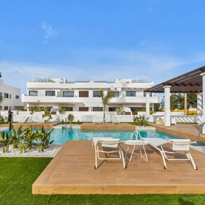 SPECIAL OFFER – 5000 EURO FURNITURE VOUCHER if you buy one of these apartments from us. Imagine having a place right by the beach, well now you could. You have a choice of ground floors with large terrace areas and top floors with roof solariums with sea views. This is a development of 3 blocks of apartments around a communal pool and pretty garden area which has community toilets too. They are located on La Serena Golf in Los Alcazares and just a short walk to the beach, amenities and some great Spanish restaurants like Tropical, Ramones and Encarnacion.