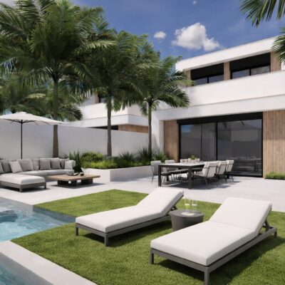 We are thrilled to offer this small development of 16 villas to be built in La Serena Golf near Los Alcazares, ready July 2027.  These two storey villas have three bedrooms and three bathrooms a private swimming pool and lots of outdoor space. La Serena Golf is a short walk to the Mar Menor beach town of Los Alcazares with some great bars and restaurants.  The Roman town of Cartagena is 20 minutes drive and Cabo de Palos and La Manga 30 minutes.  You have the fantastic La Serena Golf along with the Mar Menor Golf Resort and Roda a short drive.