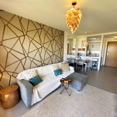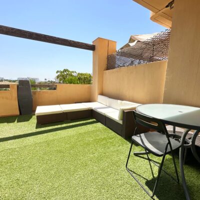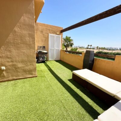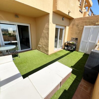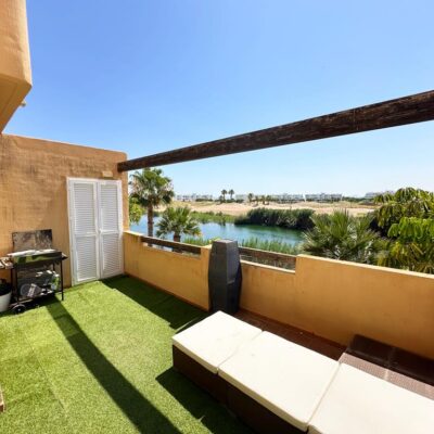 Overlooking the beautiful lake and less than a minute from the infinity pool. La Isla is very much known as the most desirable location on the resort and this apartment has it all – inside as well as out. The sale includes the furniture and as-new appliances are included, including dishwasher, washing machine and microwave. Comfortably equipped for 4 or even 6 with the large corner unit sofa bed. There is a sunny turfed terrace with a full rattan furniture set and charcoal bbq included. This apartment benefits from beautiful views and sun all day long. Accessible by lift and more secure and private than ground floor properties.
