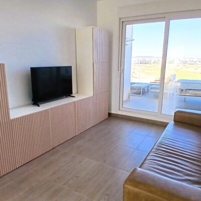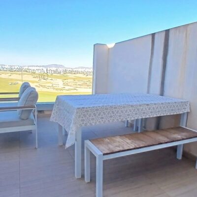 An opportunity to purchase a top floor penthouse apartment with far reaching views across the Nicklaus Design golf course on the gated Terrazas de la Torre golf resort in the Region of Murcia.  The resort is a short drive from Murcia airport and approximately 20 minutes from the beach and Murcia city.  The town of Roldan with a variety of bars and restaurants is a 5 minutes drive.