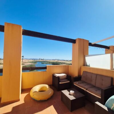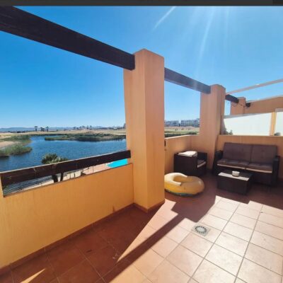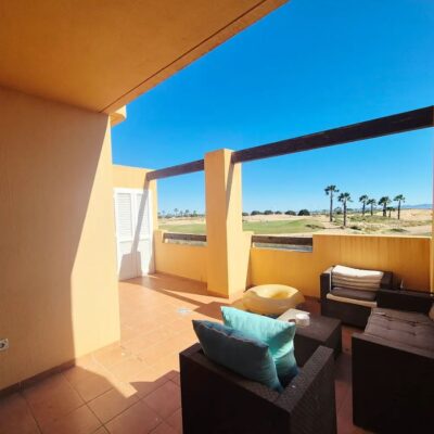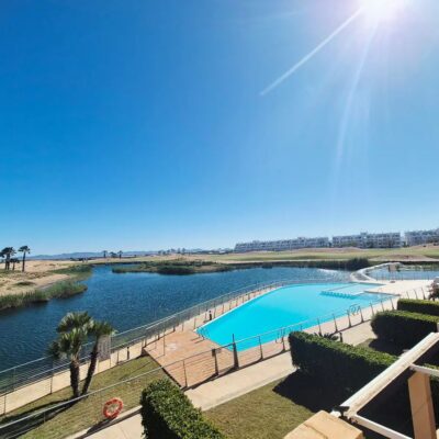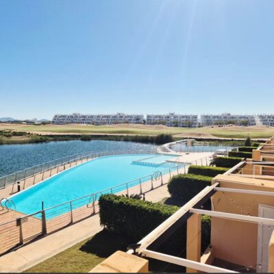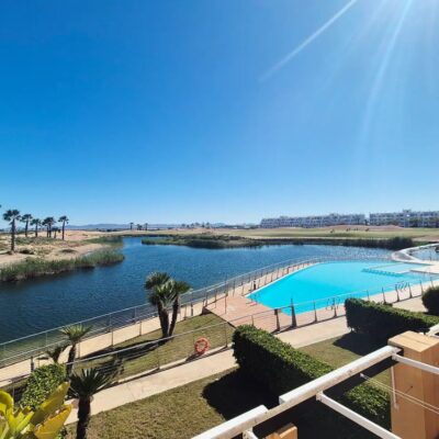 We are excited to offer this SOUTH WEST facing  two bedroom one bathroom first floor apartment with breathtaking views over pool lake and golf, located on Terrazas de la Torre Golf Resort which has the 19th Hole Bar Restaurant, Lolas Cafe bar, supermarket, communal pools and gym and fitness centre. This resort is just 5 minutes drive to either Roldan or Balsicas and only 15 minutes drive to the beach or Murcia Airport.