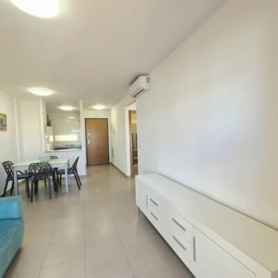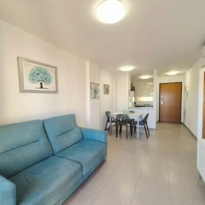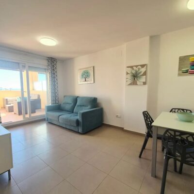 On entering this property you have an open plan kitchen to the right and this leads to the lounge diner which has patio doors to the sunny South West facing terrace with views over pool, golf and lake and enjoys stunning sunsets. There are two double bedrooms with fitted wardrobes, the master bedoom has patio doors to the terrace too. The family bathroom is inbetween both bedrooms and has been upgraded with a walk in shower and new sink. This property is just a few minutes walk to the onsite facilities and comes with Ac and furniture.