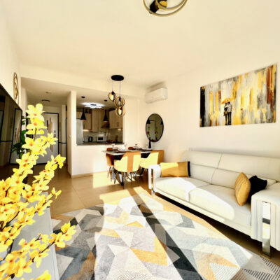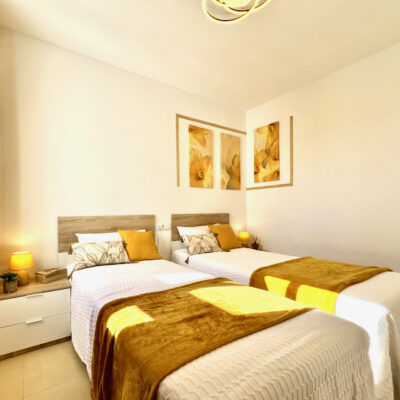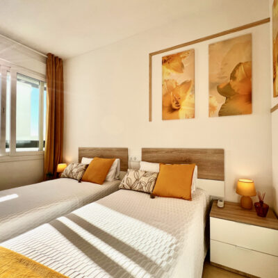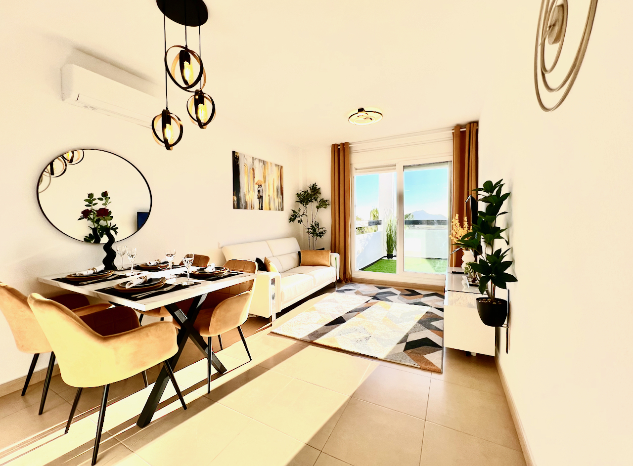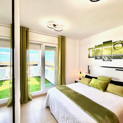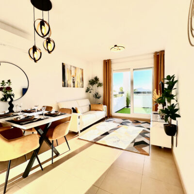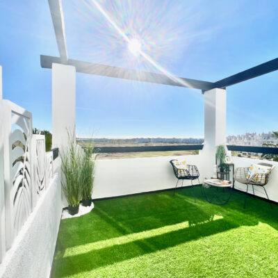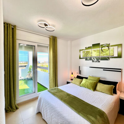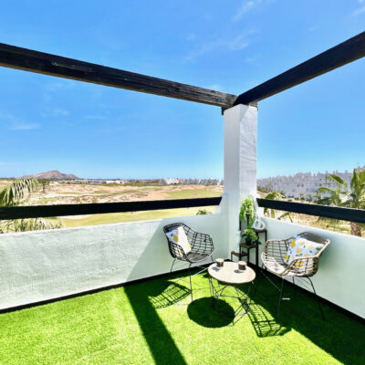 We are delighted to offer this two bedroom one bathroom modernised penthouse apartment for sale on Terrazas de la Torre Golf Resort.  The property is presented to a very high standard and enjoys wonderful views over the golf course.  The property is being sold furnished with aircon throughout. On the resort you have a supermarket and a couple of restaurants. The town of Roldan is a short drive away with a variety of bars, restaurants, supermarkets and a Monday market.  Murcia airport is ten minutes drive and Alicante an hour.  Murcia city is a 20 minutes drive as are the beaches of the Mar Menor.  This is a perfect key ready property.