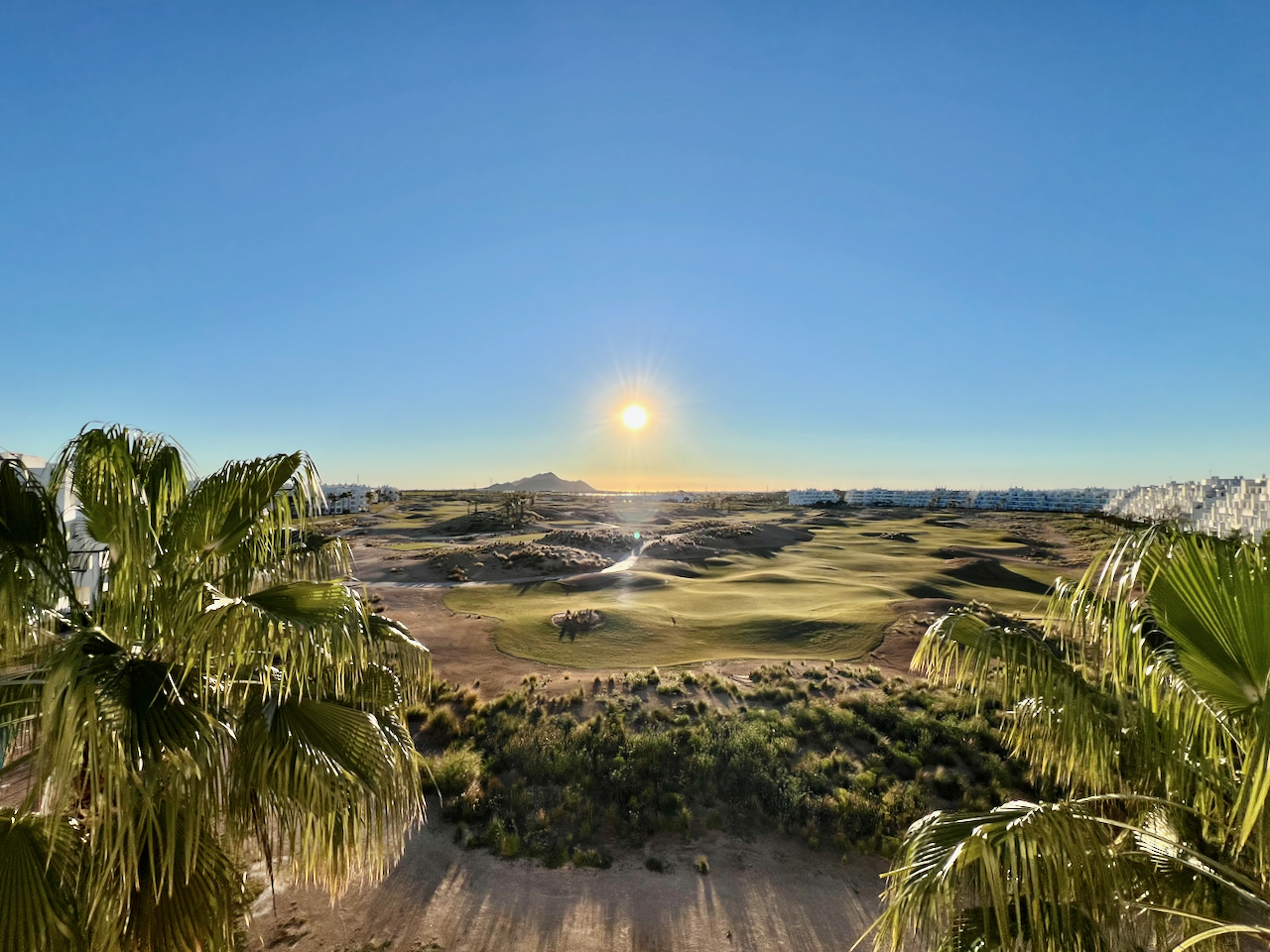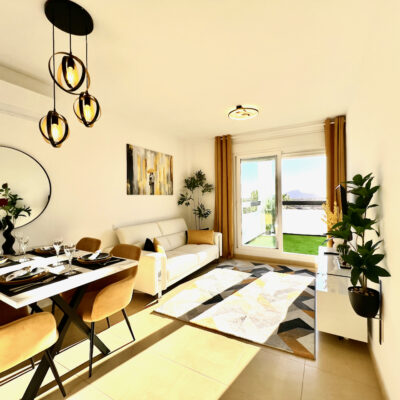 You enter the apartment into the sunny lounge diner with open plan living, kitchen and dining room.  The kitchen is compact but with all mod cons, the lounge diner has been furnished to the finest detail and has patio doors leading to the wonderful terrace where you can enjoy views over the golf course.  There are two double bedrooms both with fitted wardrobes, the master having access to the main terrace and a separate family bathroom.  The property is presented to a very high standard, a must see.  Contact us to book a viewing appointment.