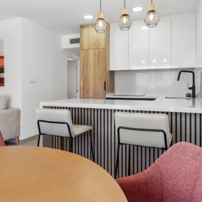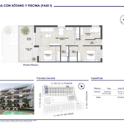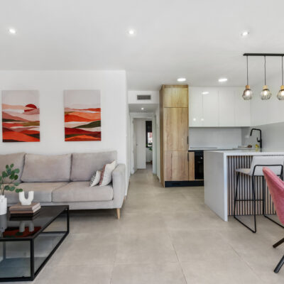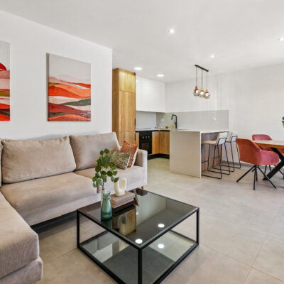 SPECIAL OFFER – AC PACKAGE if you purchase one of these fabulous three bedroom apartments from us. We are excited to offer these apartments in a new development located in Santiago de la Ribera just 850m to the beach. This is a development of 150 touristic apartments that come with tourist licences. The purchase tax applicable on these apartments is 21% but if you create a Spanish SL company you can claim this back. Touristic apartments must be rented out and can not be lived in fulltime, so you enjoy the winters or holidays here and rent it when you are not here. We think these are a exceptional price for a three bed apartment so close to the beach. There are ground floors available from 240.000 euros and penthouses with roof solariums from 290.000 euros.