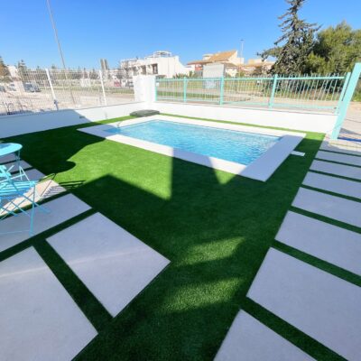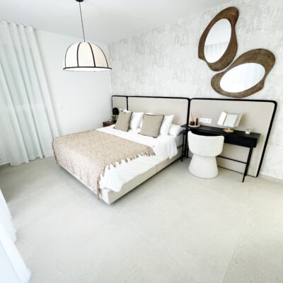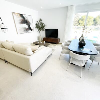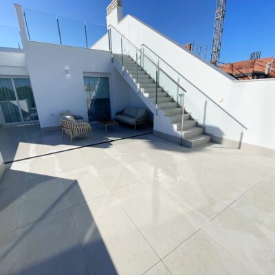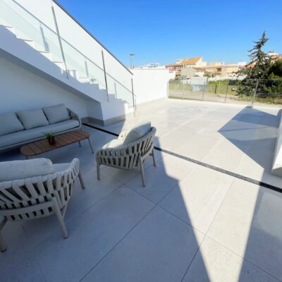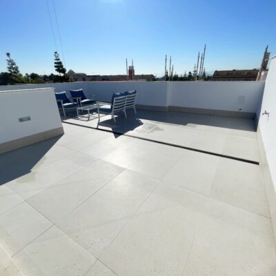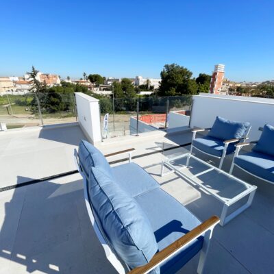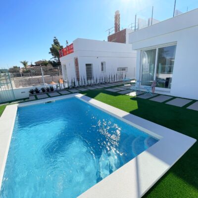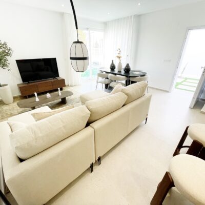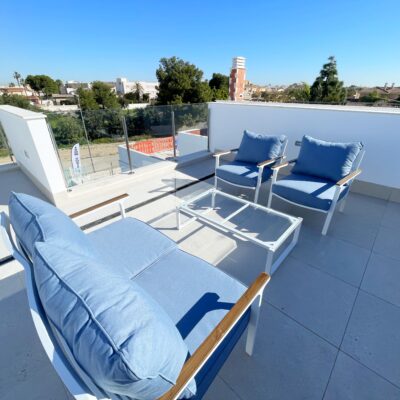 These stylish three bedroom three bathroom villas are located on La Serena Golf just a short walk to the beach and the amenities of the old town of Los Alcazares which has some fantastic restaurants such as Ramons, Tropical and Encarnacion. There is also an hourly bus stop close by that goes up to Los Narejos where the 525 hotel is located.
