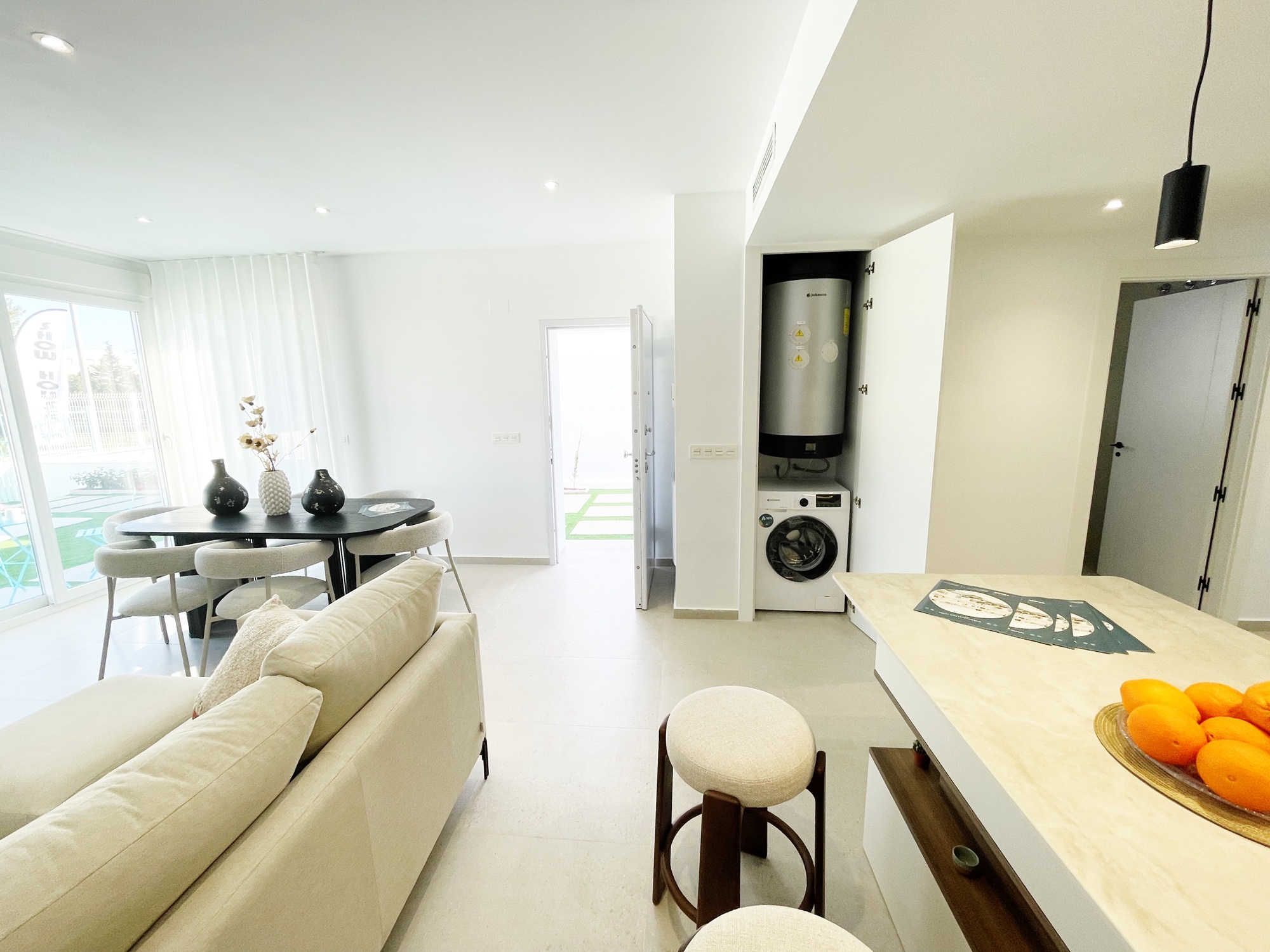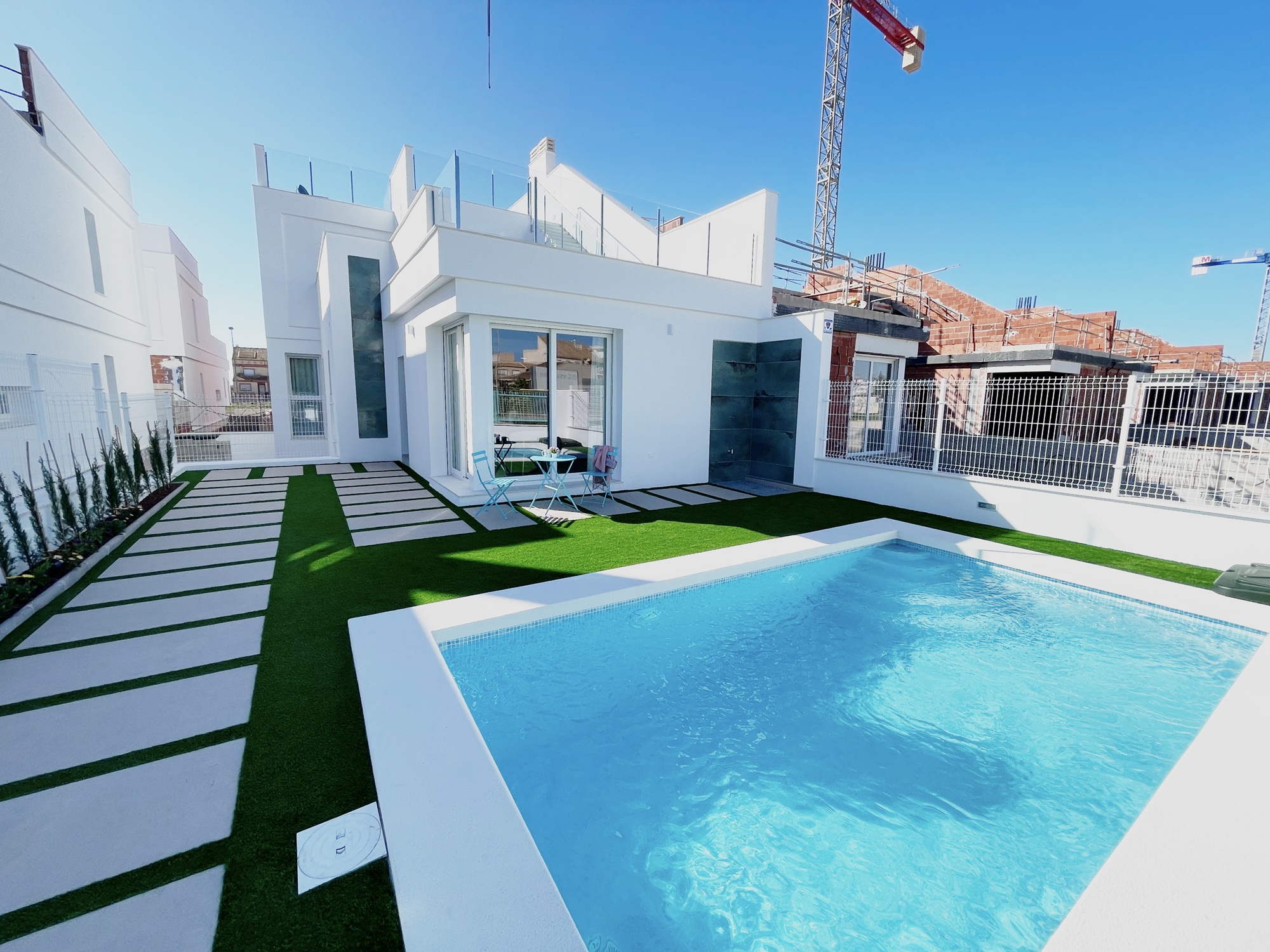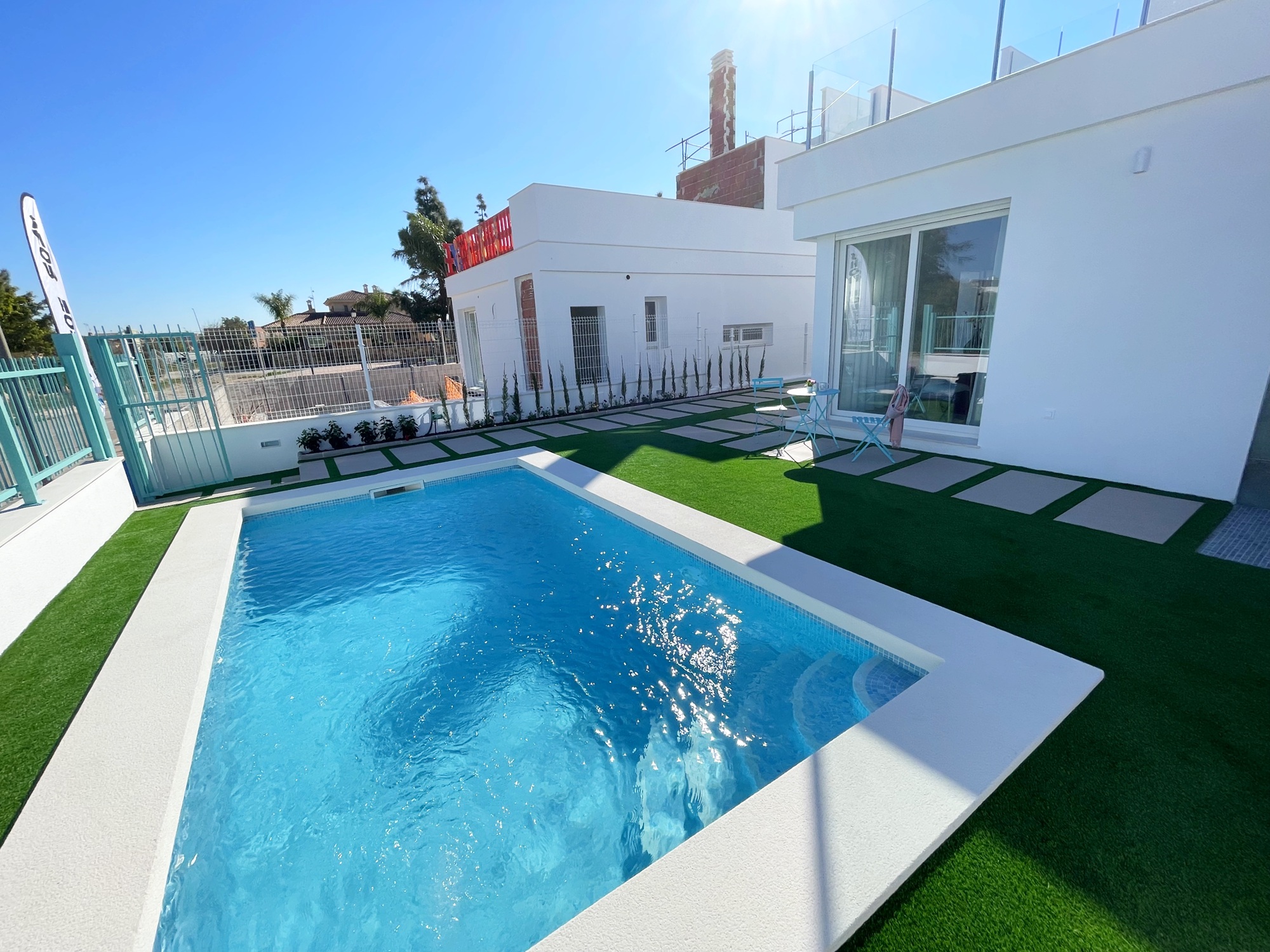 This villa comes with vented AC, white goods in the kitchen, video intercom, LEDS inside and out, electric shutters and underfloor heating in the bathrooms. We think they offer great value for money. Contact us to arrange to view these villas.
