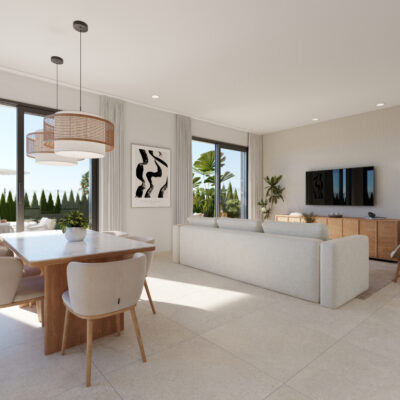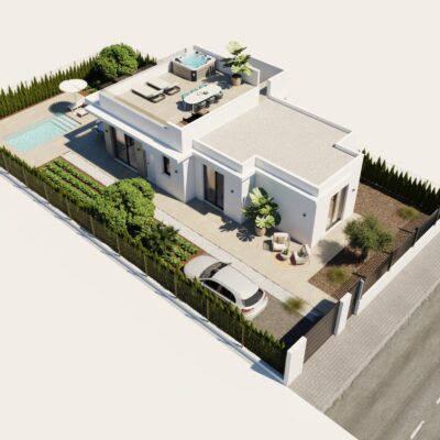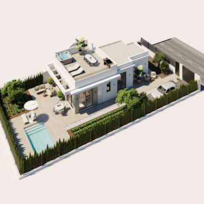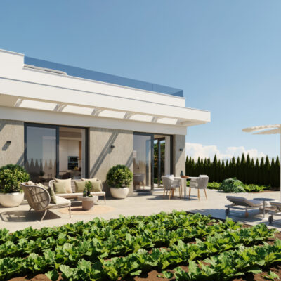 SPECIAL OFFER – AC PACKAGE included if you purchase one of these villas from us. We are delighted to offer these modern two bedroom two bathroom villas on large plots located on Hacienda del Alamo Golf Resort close to the resorts amenities.